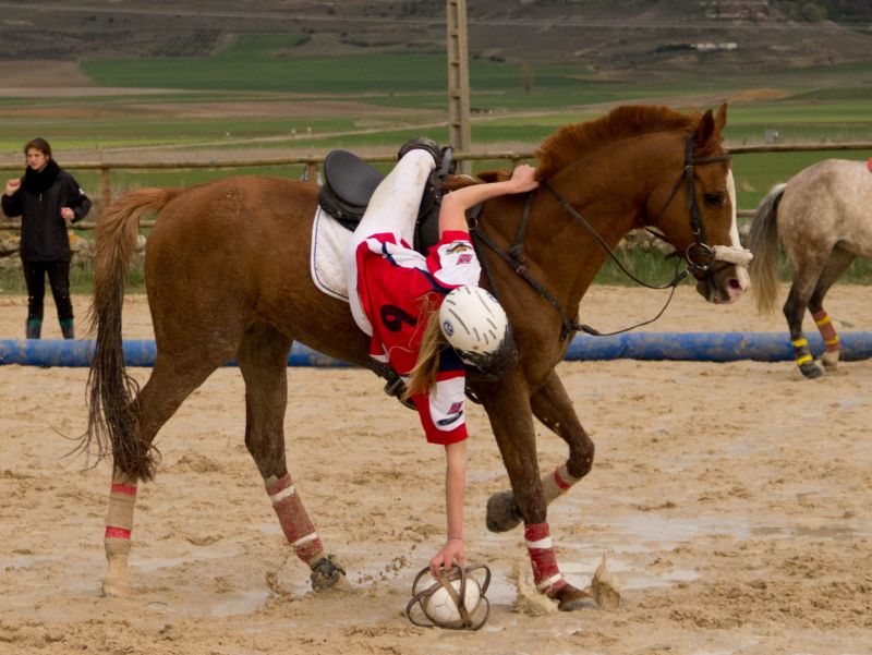 Team: ieder team bestaat uit zes spelers, waarvan vier zich in de wedstrijdring bevinden en twee zich in de vrije zone ophouden. Er mag regelmatig worden gewisseld van spelers. Tijd: elk spel duurt twee keer 10 minuten, met daartussen drie minuten pauze. Elk team heeft het recht om twee time-outs aan te vragen, van dertig seconden per speelhelft. Scoren: voordat een speler mag scoren, moet de bal drie keer zijn overgespeeld tussen drie verschillende spelers. De bal mag maximaal tien seconden worden vastgehouden. De bal: mag niet worden opgeraapt wanneer de ruiter stilstaat. Slechts een ruiter mag proberen de bal op te rapen, de overige spelers moeten minimaal vijf meter afstand blijven. De opraper mag niet worden gestoord, de tegenstander mag pas weer aanvallen als de ruiter weer rechtop op zijn paard zit. Het terrein: is zestig tot 75 meter lang en twintig tot dertig breed. De ideale afmeting is 65 bij 25 meter. Aan de korte zijde zit een beschot van 1,60 meter hoog. Het doel: is een meter in doorsnede. De onderkant van het doel hangt drieënhalve meter boven de grond en tweeënhalve meter van de achterlijn.