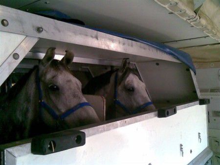 Tijdens de vlucht worden de paarden vervoerd in speciaal voor vliegtuigen ontworpen paardenboxen. In elke box staan twee paarden. Er is voldoende ruimte maar de boxen kunnen niet te groot zijn omdat de paarden zich dan eerder kunnen bezeren als ze vallen of zich proberen om te draaien. De Flying grooms weten precies wat de paarden nodig hebben tijdens hun lange vluchten. Tijdens de vlucht krijgen ze te eten en te drinken. Met name het drinken is erg belangrijk. Hoe beter het paard drinkt voor en tijdens de vlucht, des te fitter het op de bestemming zal aankomen. De temperatuur in het vliegtuig wordt op ongeveer 17 graden Celsius gehouden zodat de paarden koel en relaxed zullen vliegen.